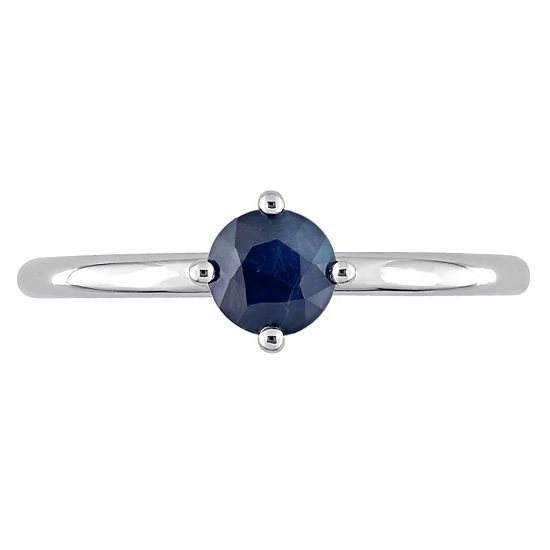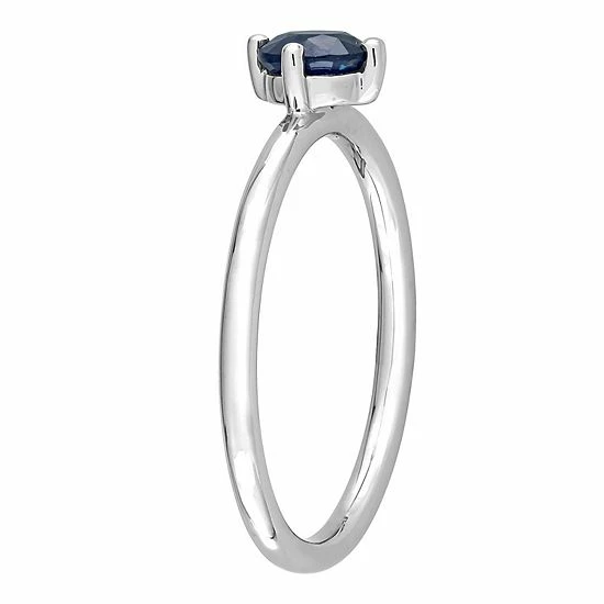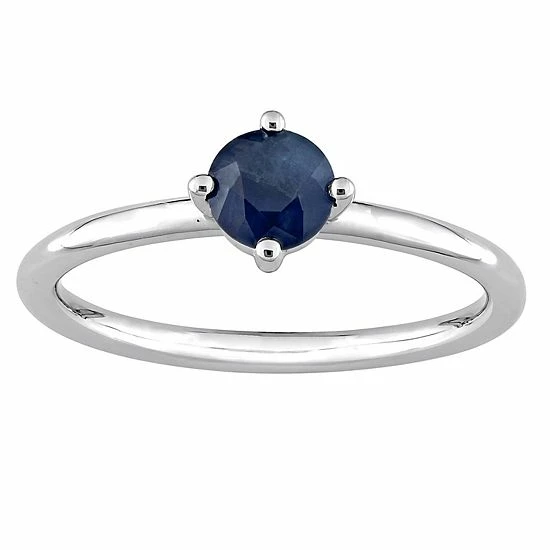 Featuring a single round-cut blue sapphire, this 10k white gold Stella Grace stack ring is simply stunning.