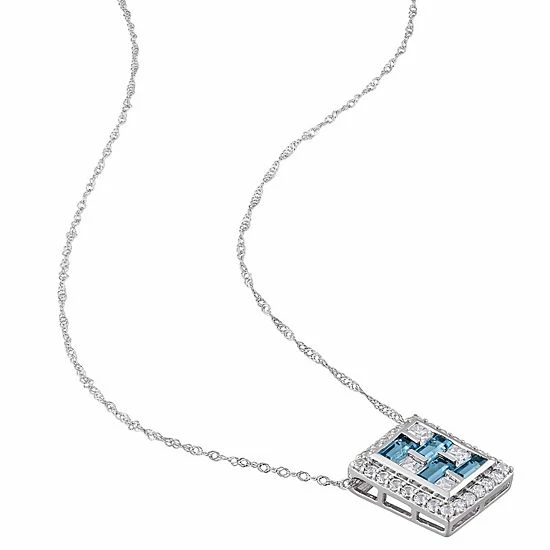 Featuring a unique geometric design made from blue and white topaz gemstones, this 10k white gold Stella Grace necklace offers a distinctive look you’re sure to love.