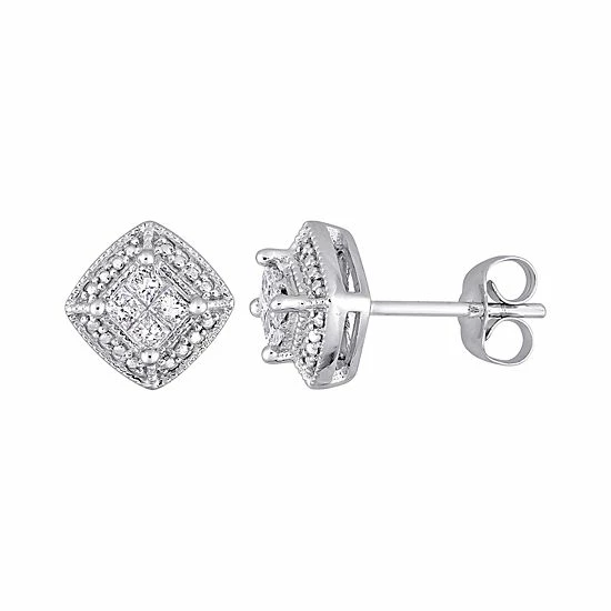 Sparkling diamond accents give these 10k white gold stud earrings from Stella Grace a lovely accessory.