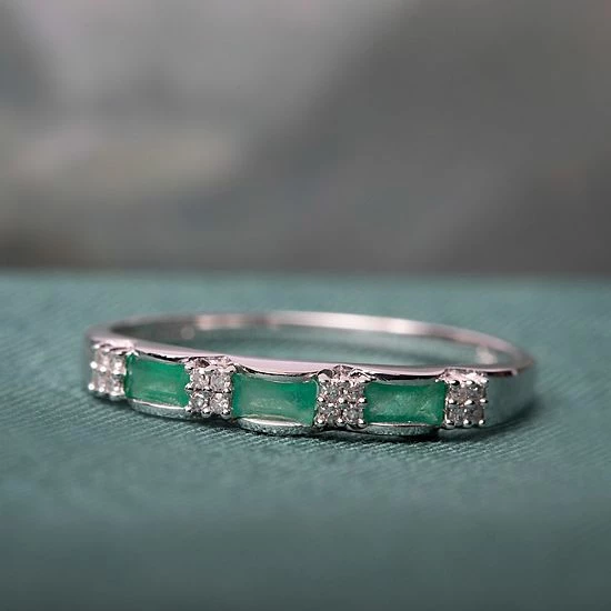 This gorgeous Stella Grace 10k white gold emerald and diamond accented eternity ring is the dazzling accessory you’ve been searching for.