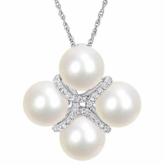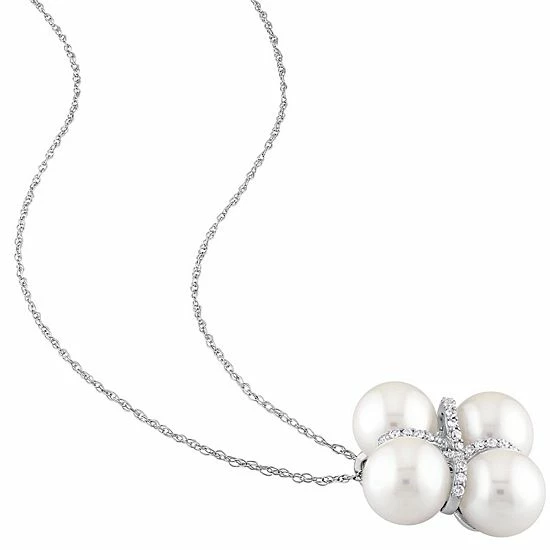 Adorned with luminous freshwater cultured pearls and sparkling diamond accents, this Stella Grace 10k white gold crossover cluster pendant necklace is an eye-catching accessory you’ll love.