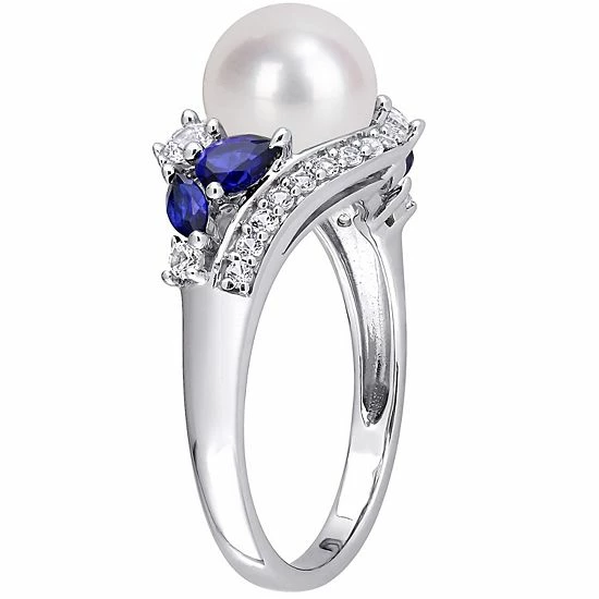 Designed with a lustrous freshwater cultured pearl accented by lab-created blue and white sapphires, this Stella Grace ring is a captivating addition to your look.
