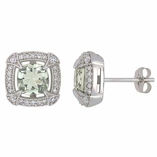 Featuring a square halo motif and eye-catching green quartz center stones, these Stella Grace earrings provide endless sparkle.