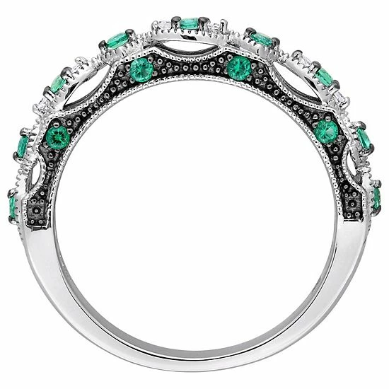 Featuring a vintage-inspired design decorated with lab-created emeralds, this Stella Grace ring is a uniquely beautiful way to celebrate your anniversary.