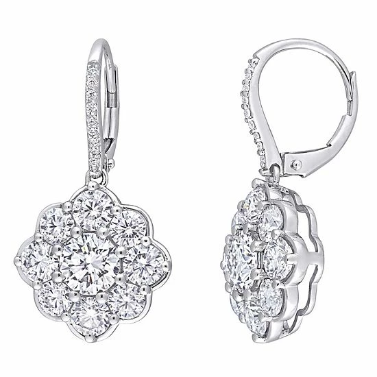 These stunning 10k white gold lab-created moissanite floral leverback earrings are a must-add to your fine jewelry collection.