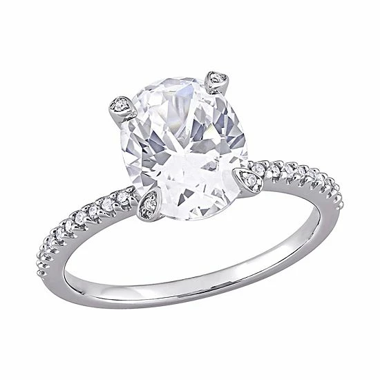 This Stella Grace white sapphire and diamond engagement ring is a gorgeous representation of your love.