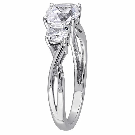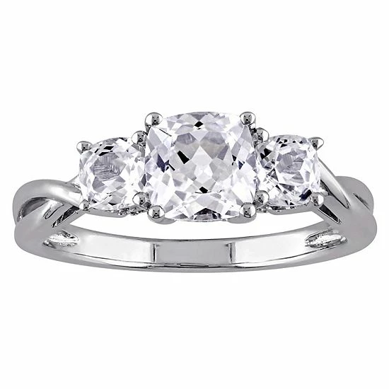 Beautifully adorned with a trio of cushion-cut, lab-created white sapphire gemstones, this Stella Grace ring is a beautiful accent to your look.