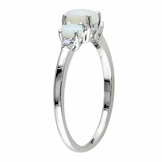 This gorgeous Stella Grace 10k white gold 3-stone ring showcases opals and diamond accents for a dazzling accessory that she’s sure to love.