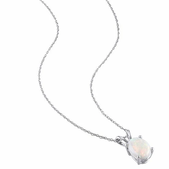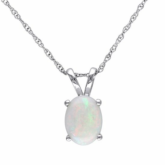 This gorgeous 10k white gold oval cut opal solitaire pendant necklace is the perfect way to finish any outfit.