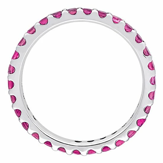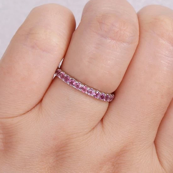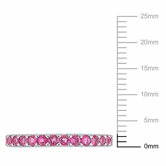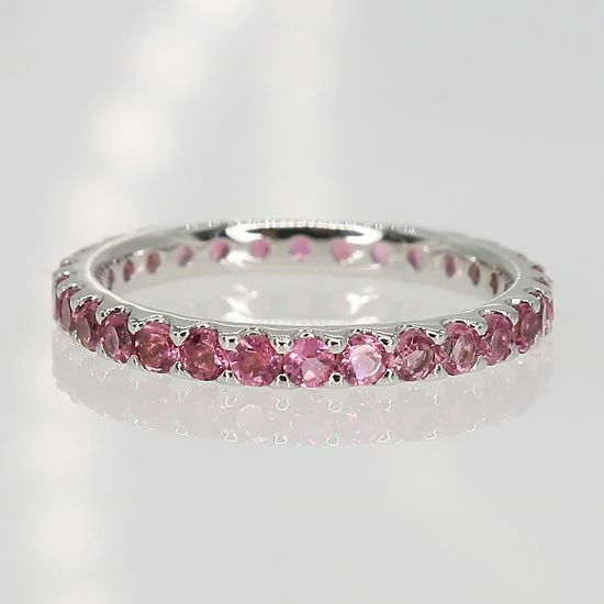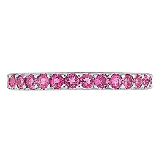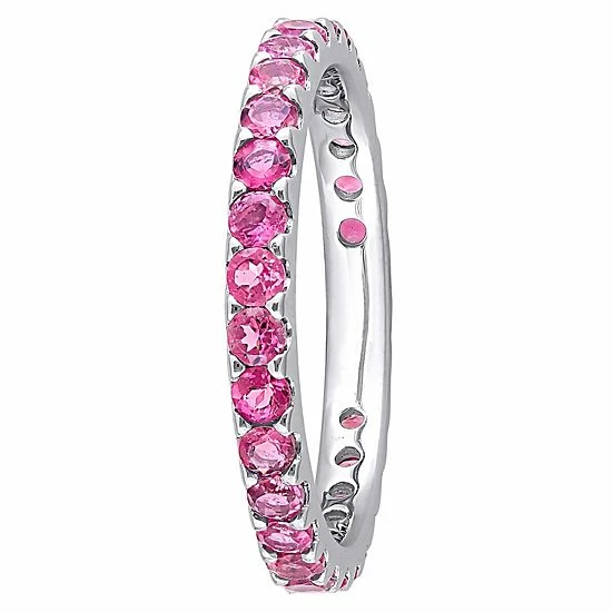 Featuring a series of beautiful pink tourmaline stones, this 10k white gold eternity ring offers a fun and gorgeous touch to any outfit.
