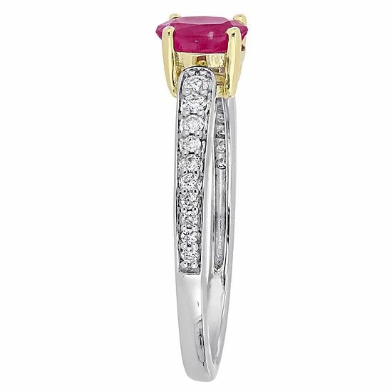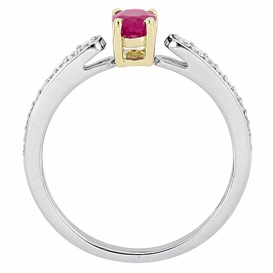 This dazzling Stella Grace 10k white gold, ruby and diamond engagement ring is sure to bring a smile to her face.