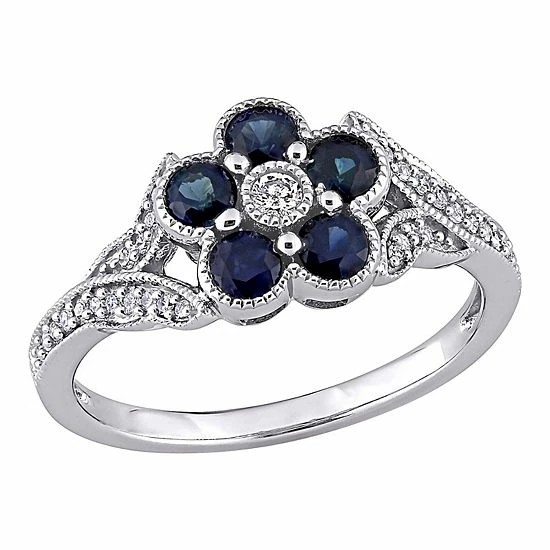 Stella Grace delivers radiant style with this sapphire and diamond flower ring.