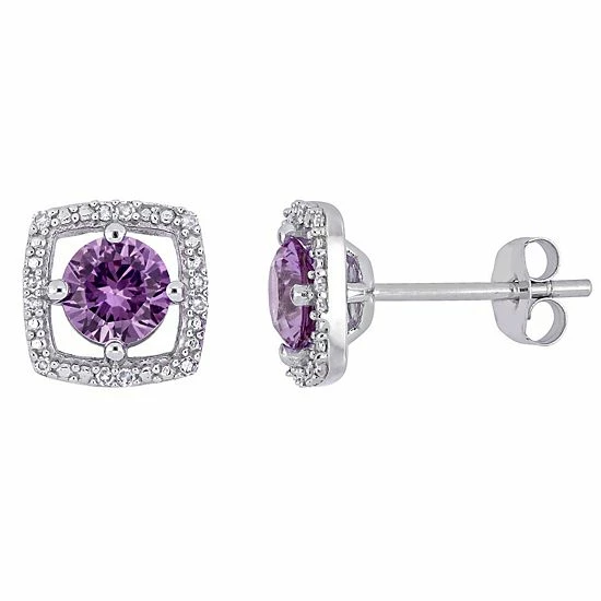 These vibrant 10k white gold simulated alexandrite and diamond accent halo stud earrings are a must add to your fine jewelry collection.