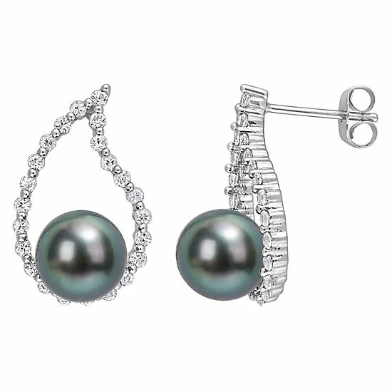 Adorned with luminous Tahitian cultured pearls and sparkling white sapphires, these Stella Grace 10k white gold teardrop earrings are an eye-catching accessory you’ll love.