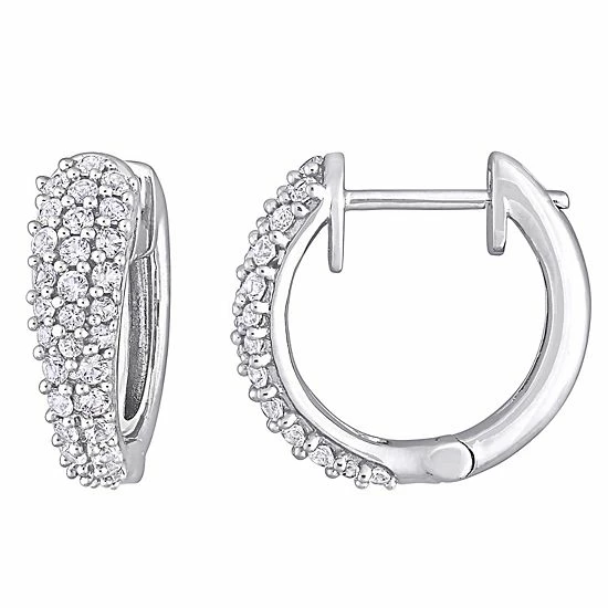 Add a dazzling complement to any outfit with these Stella Grace London white sapphire hoop earrings.