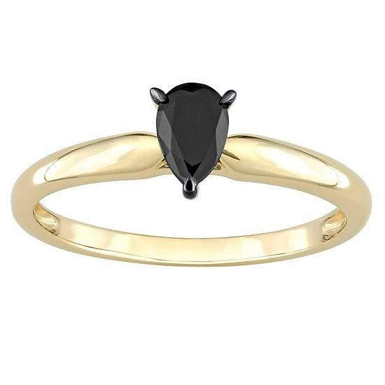 Crafted from 14k gold, and adorned with a stunning, pear-cut black diamond, this Stella Grace solitaire engagement ring beautifully celebrates your lifelong commitment.