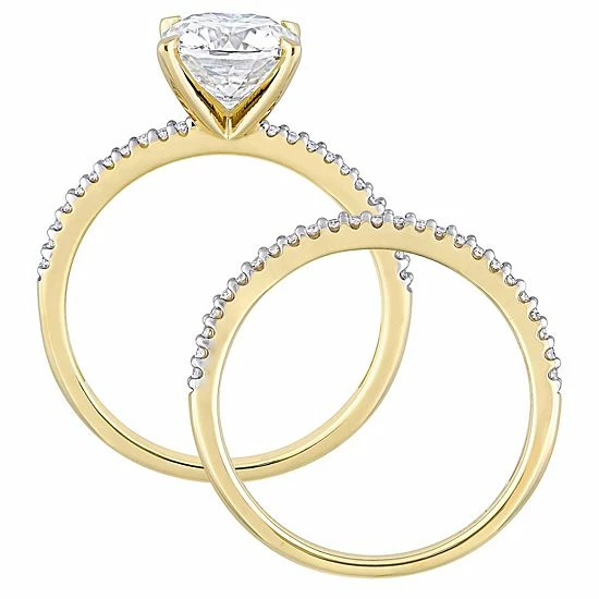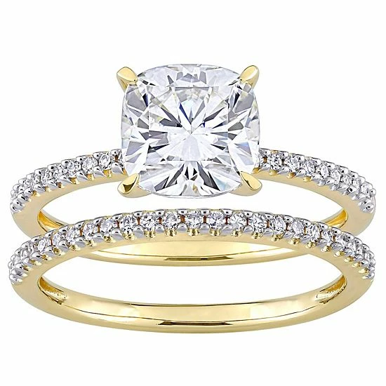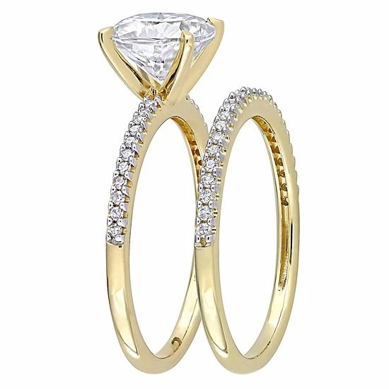Capture her heart in a beautiful way when you present her with this Stella Grace lab-created moissanite engagement ring set.