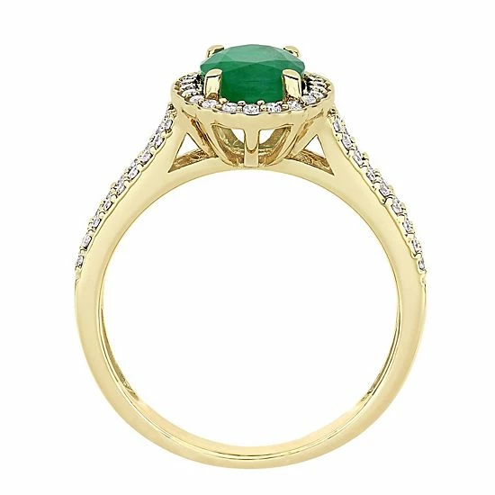 Featuring an oval-cut emerald center stone set in a vintage-inspired halo motif, this Stella Grace ring offers a classically beautiful look she’ll love.