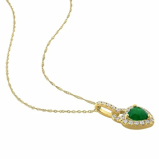 This romantic 14k gold Stella Grace necklace features a beautiful heart-cut emerald with sparkling a diamond halo for a lovely look.