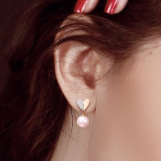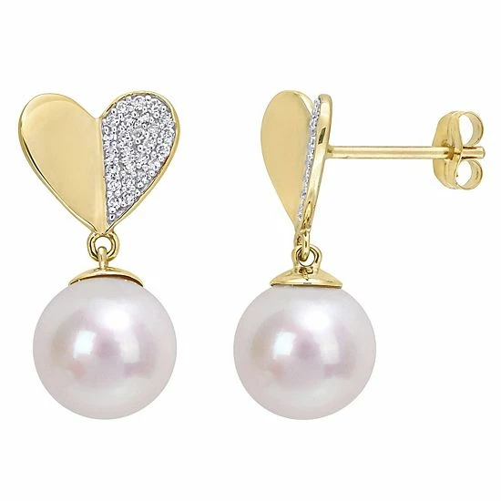 Adorned with luminous freshwater cultured pearls and sparkling diamond accents, these Stella Grace 14k gold heart drop earrings are an eye-catching accessory you’ll love.