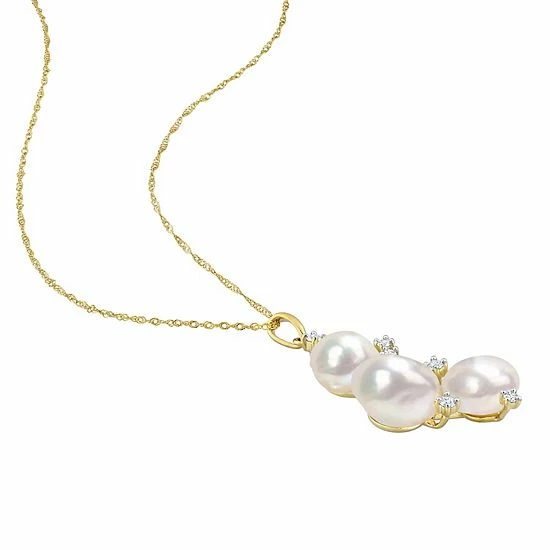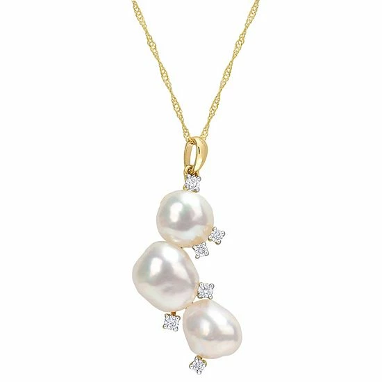 Adorned with luminous freshwater cultured pearls and sparkling diamonds, this Stella Grace 14k gold pendant drop necklace is an eye-catching accessory you’ll love.