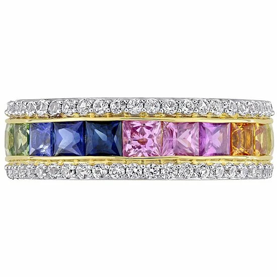 Decorated with a row of colorful, square-cut sapphire gemstones, this 14k gold Stella Grace ring is a charming accent to your favorite outfits.