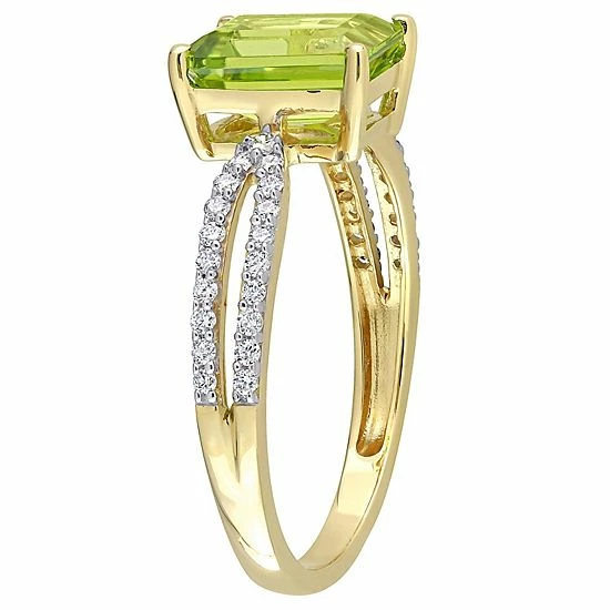 Featuring an emerald-cut peridot center stone accented with shimmering diamonds, this 14k gold Stella Grace engagement ring is a beautiful symbol of your love.