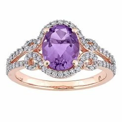 Featuring an oval-cut amethyst, shimmering diamond accents, and a stunning, vintage-inspired design, this Stella Grace engagement ring offers timeless beauty.