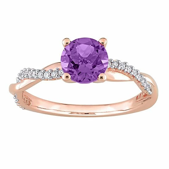 Adorned with a round-cut amethyst center stone accented with a swirl of shimmering diamonds, this Stella Grace engagement ring is a beautiful symbol of your love.