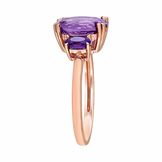 Complete your fashionable look with this Stella Grace Bloom 14k rose gold amethyst 3-stone ring.