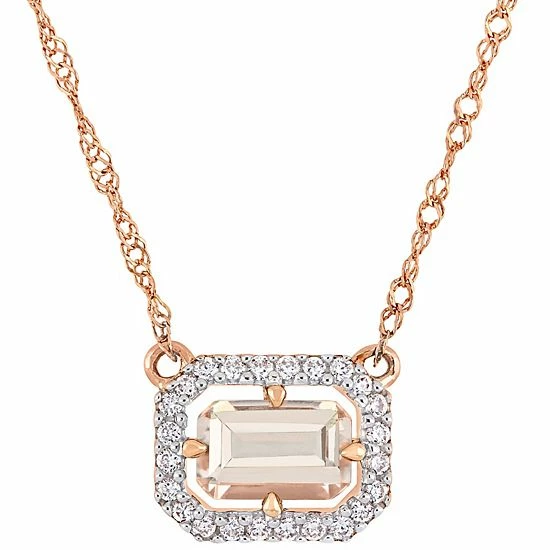 Adorned with sparkling morganite and diamond accents, this Stella Grace 14k rose gold floating halo necklace is a beautiful addition to your wardrobe.