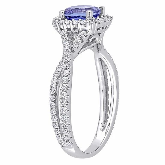 Featuring a round-cut tanzanite center stone accented with shimmering diamonds, this Stella Grace engagement ring is a beautiful symbol of your love.