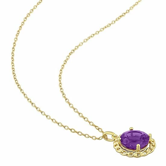 Accessorize with sparkling style when you wear this Stella Grace 18k gold over sterling silver amethyst halo link pendant necklace.