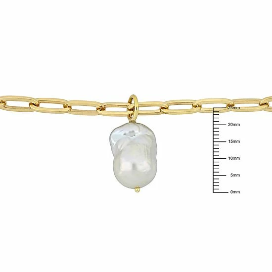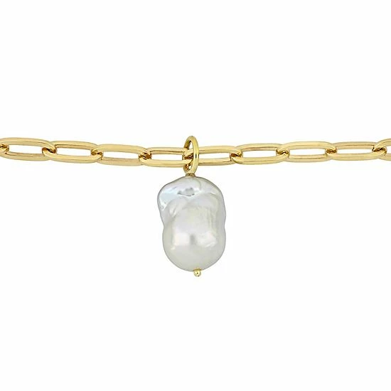 Adorned with a shining baroque shape freshwater cultured pearl, this Stella Grace 18k gold over sterling silver link chain bracelet is a beautiful accessory you’ll love.