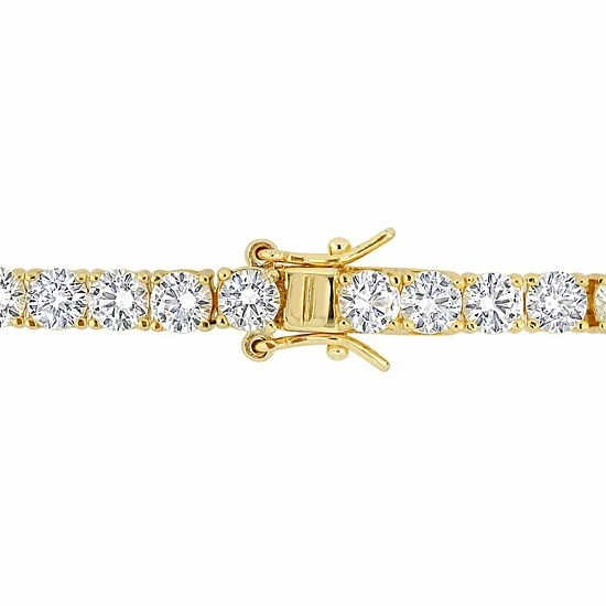 Adorned with lab-created white sapphires, this 18k gold over sterling silver tennis bracelet is a sparkling accessory you’ll love.