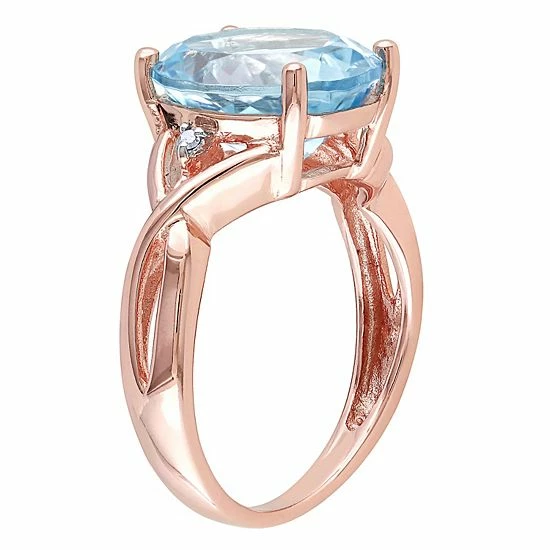 Adorned with an oval-cut, sky blue topaz center stone and dazzling diamond accents, this Stella Grace ring is sure to turn heads.
