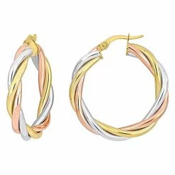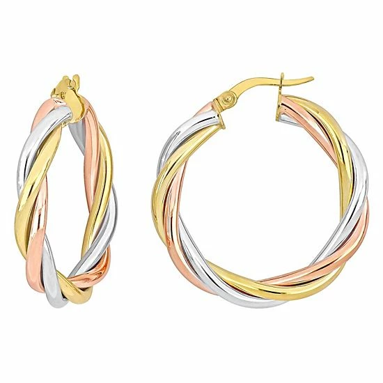 Make heads turn with these beautiful Stella Grace 3-tone twisted hoop earrings.