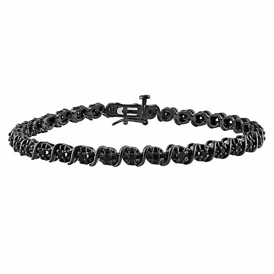 Make an impression with this alluring Stella Grace tennis bracelet, adorned with sparkling black diamonds and smooth black rhodium over sterling silver.