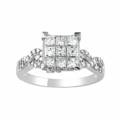 Dazzling with diamonds in a square motif, this 10k white gold ring abounds with breathtaking beauty.