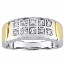 This striking Stella Grace men’s ring is crafted with 10k gold and 10k white gold with a double row of diamonds.