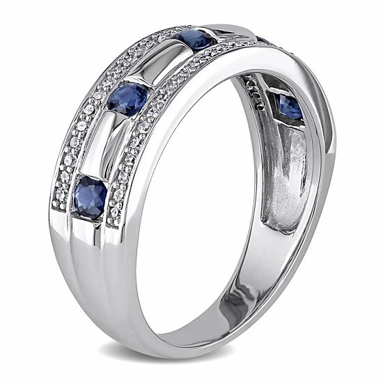 Celebrate your commitment with this Stella Grace wedding band, crafted with 10k white gold and adorned with sapphires and genuine diamonds.