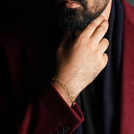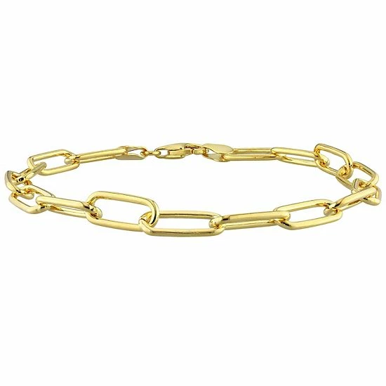 Add some variety to your everyday wardrobe with this handsome Stella Grace 18k gold plated paper clip link chain bracelet.