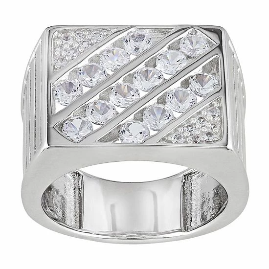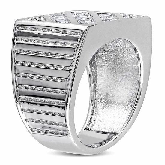 This striking Stella Grace men’s ring is crafted with sterling silver and impressive lab-created white sapphires.