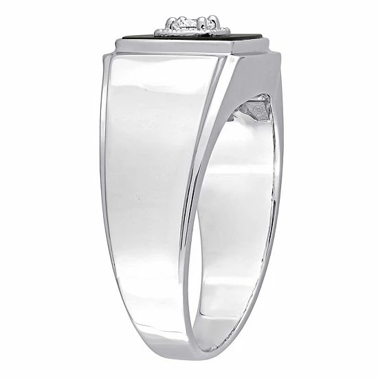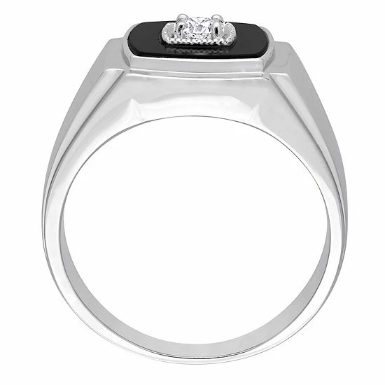 With a 1/6 carat T.W. diamond against a black onyx, this Stella Grace men’s ring is sure to stand out as a handsome choice.