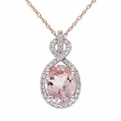 Make an unforgettable entrance wearing this 10k rose gold pendant. An oval-cut morganite center stone and round-cut diamonds give it a dazzling glow. Comes in a gift box.