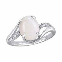 Adorned with a captivating white opal cabochon and scintillating diamond accents, this Stella Grace ring is simply enchanting.