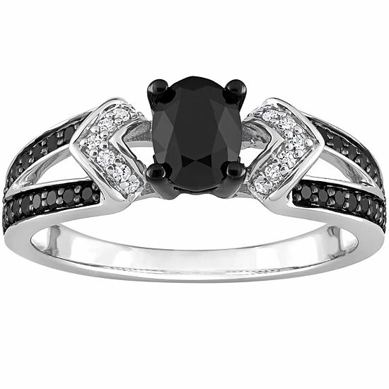 Adorned with alluring black and white diamonds, this Stella Grace sterling silver split band engagement ring is a unique symbol of your unique bond.