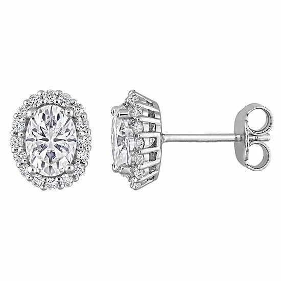 Complement any outfit with these versatile and stylish Stella Grace lab-created moissanite halo stud earrings.