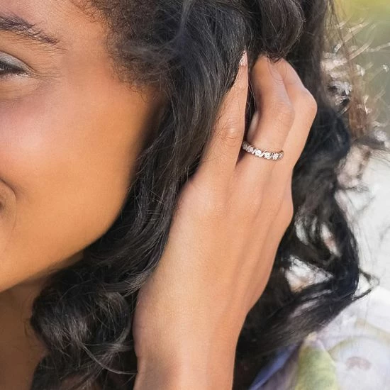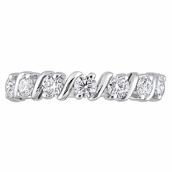 Adorned with lab-created moissanite, this beautiful Stella Grace ring is sure to dazzle from every angle.