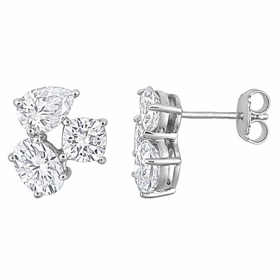 Adorned with trios of lab-created moissanite gemstones, these Stella Grace earrings are a beautiful complement to your wardrobe.